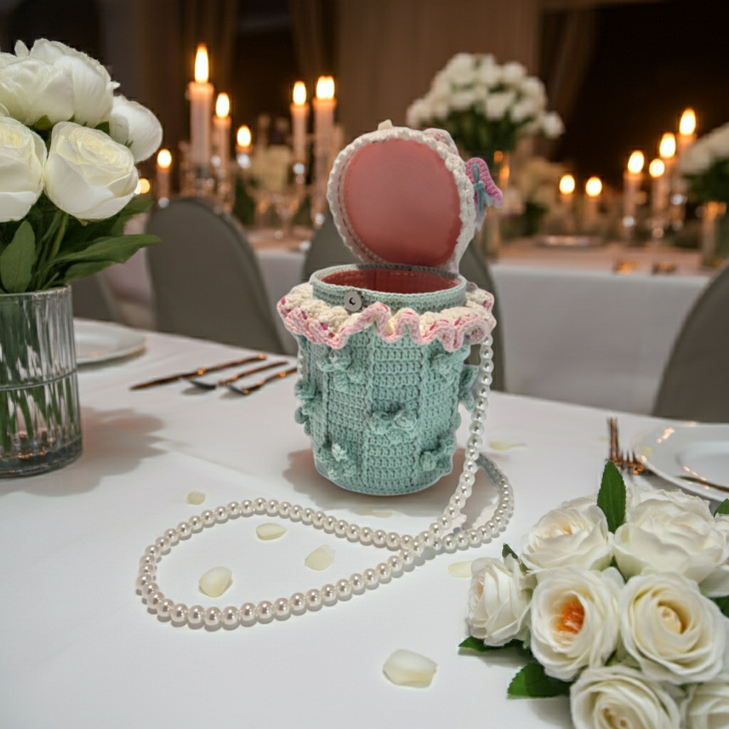 Add a dash of fun to your little one's style with this adorable Handmade Crochet Cake Purse in playful pink and teal! Crafted with care, this cute kids' accessory features a whimsical cake design with crochet hearts and ruffled edges, perfect for young imaginations. Complete with a detachable pearl strap, it’s lightweight and easy to carry, with a small interior for treasures like toys, snacks, or trinkets. Made from soft, premium cotton yarn, this durable purse is ideal for playdates or special occasions.